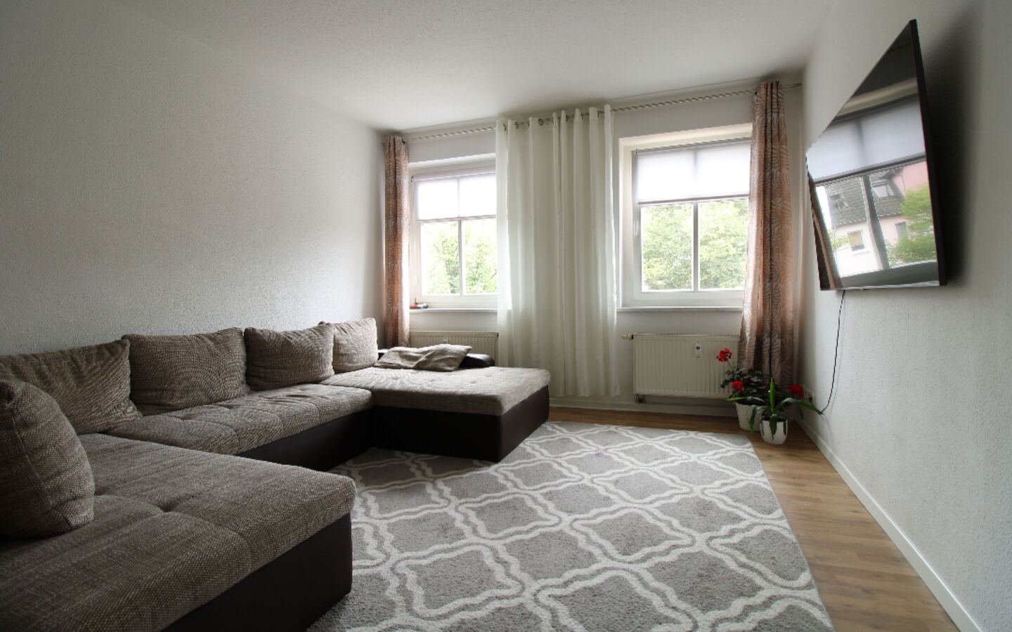 Die gemütliche Wohnung teilt sich auf in einem Wohnzimmer, zwei Kinderzimmer, einem Schlafzimmer, einer Küche und einem Tageslichtbad mit Badewanne.